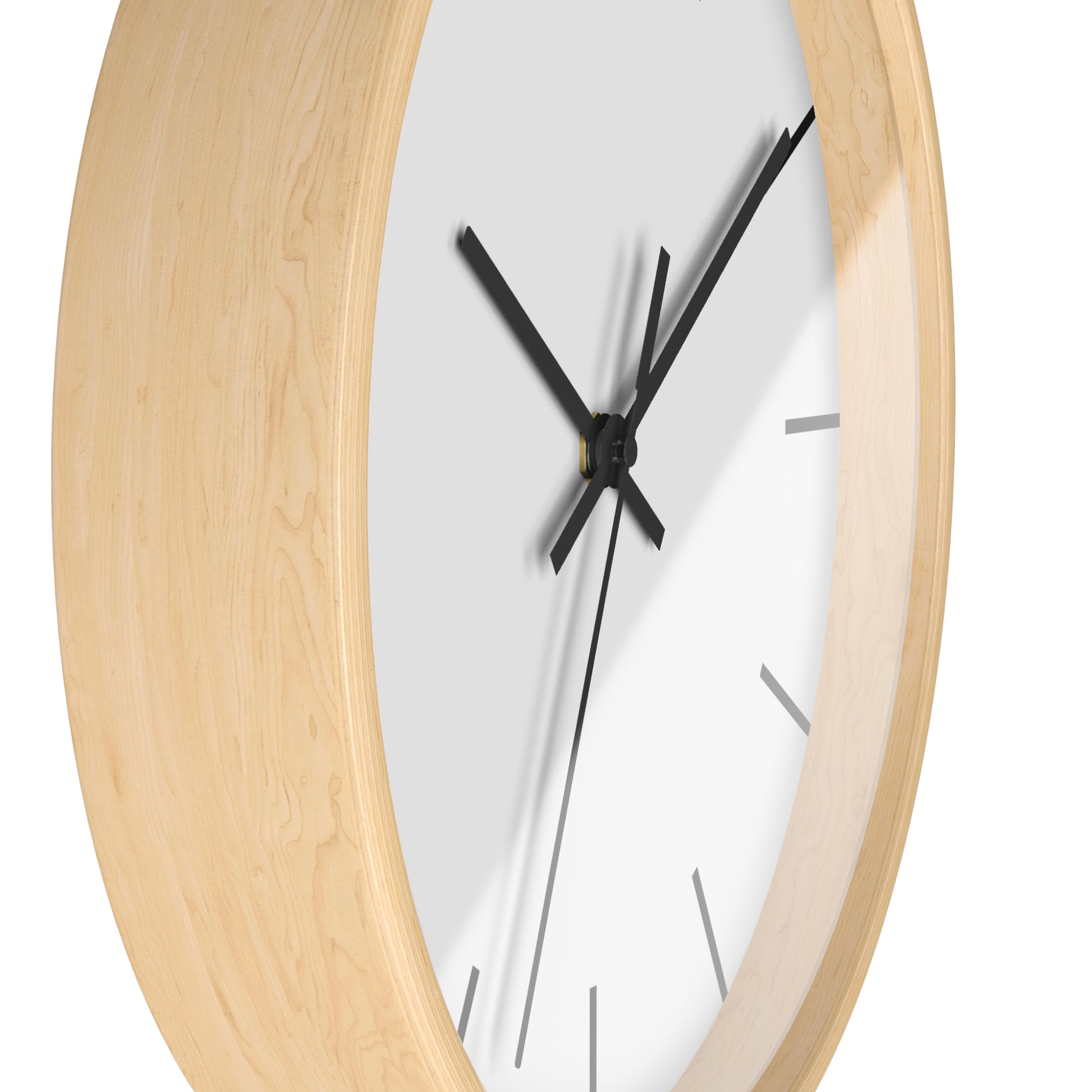 - Three frame color options (natural wood, black, white) with matching hands